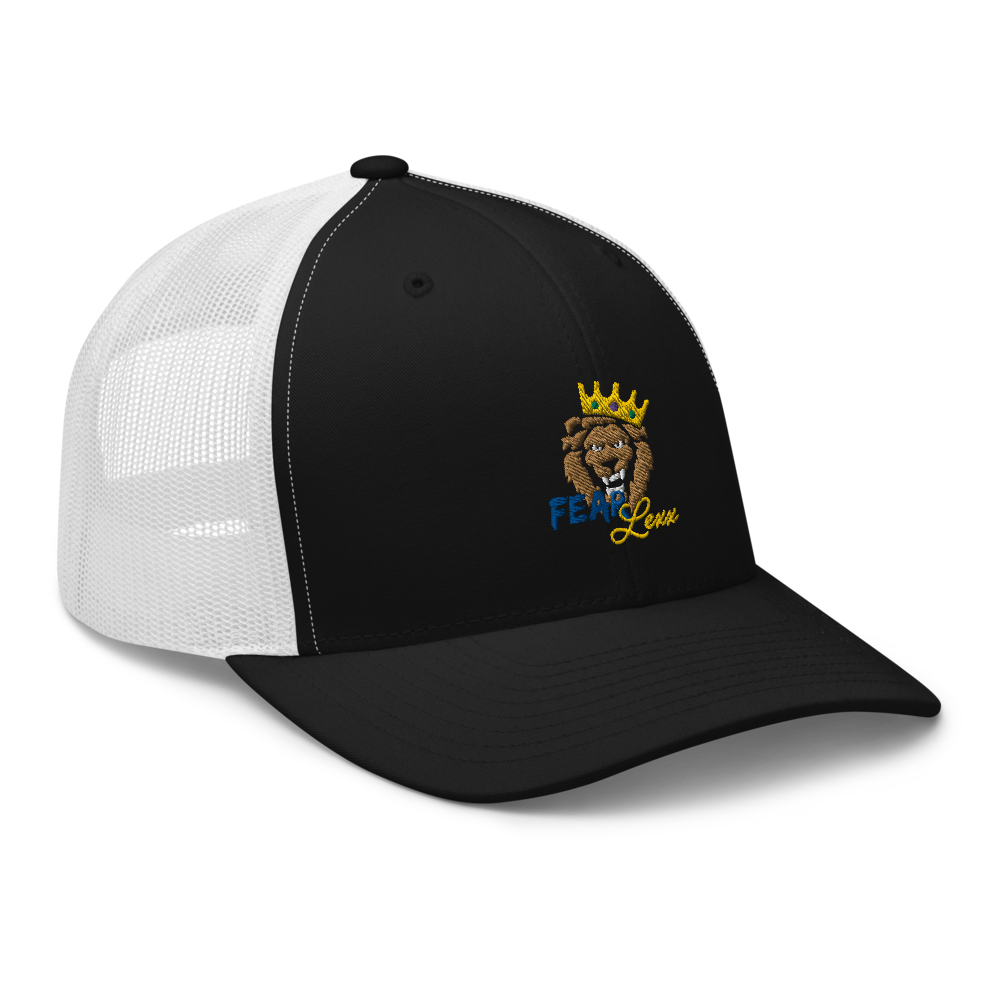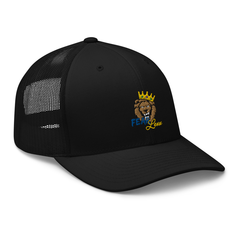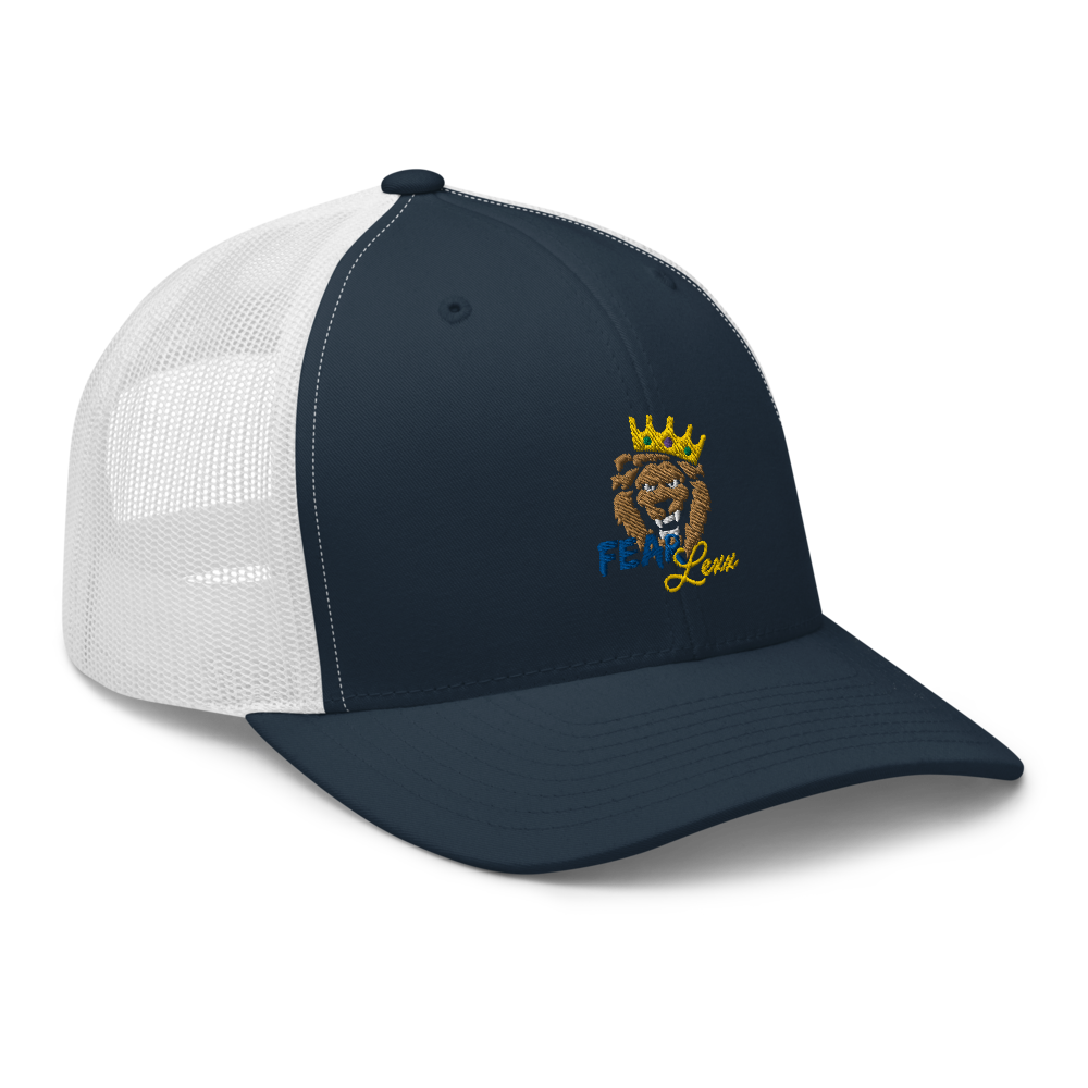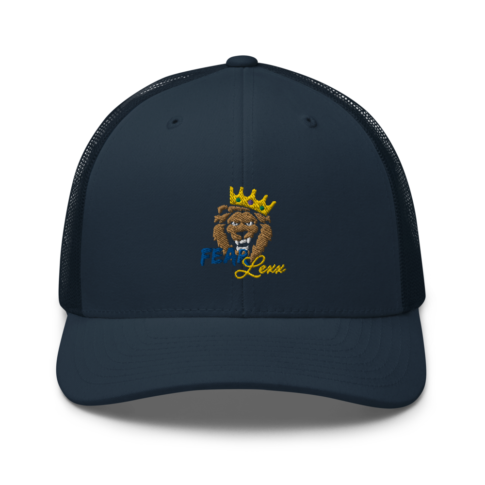 Unisex Embroidered Trucker Cap (Blue "fear")