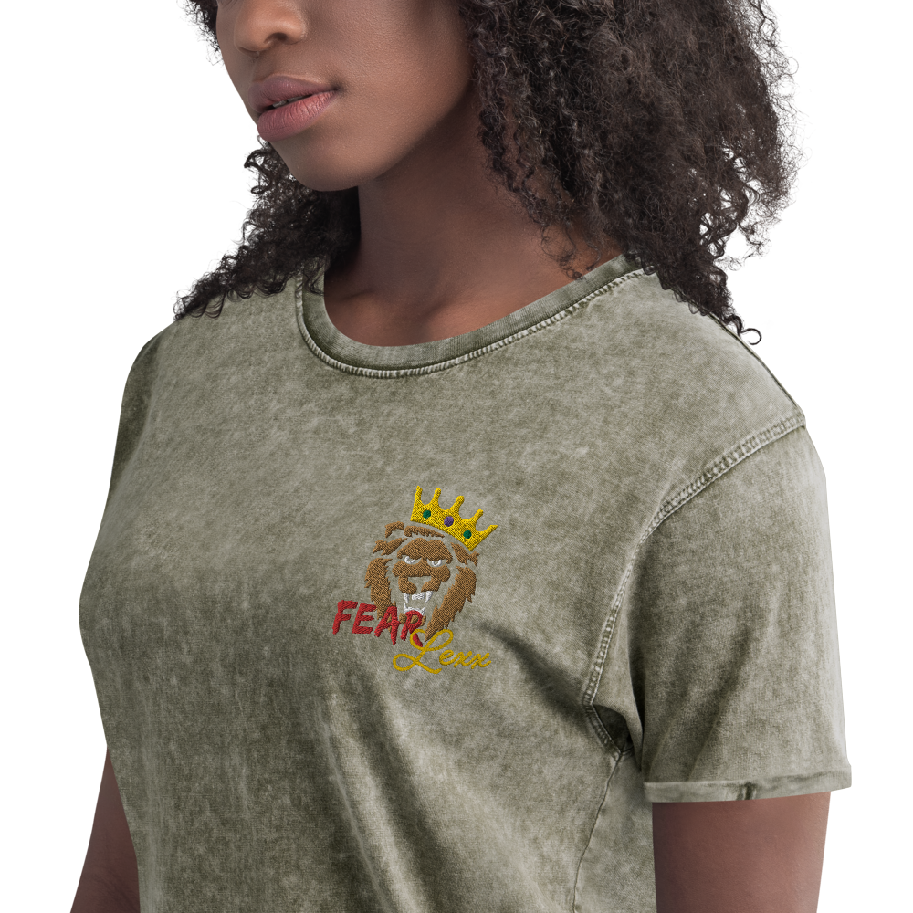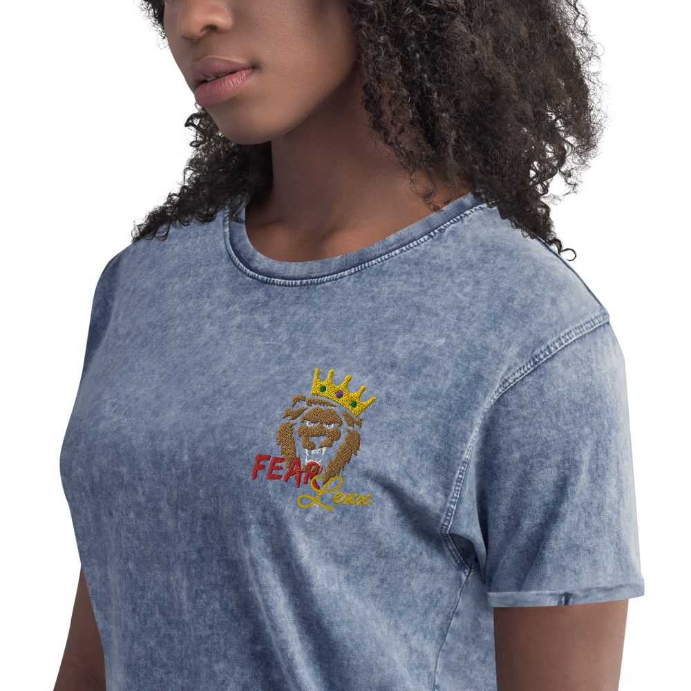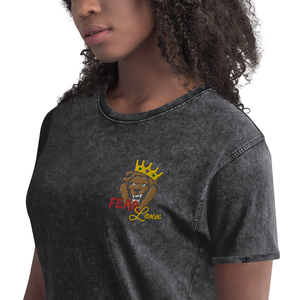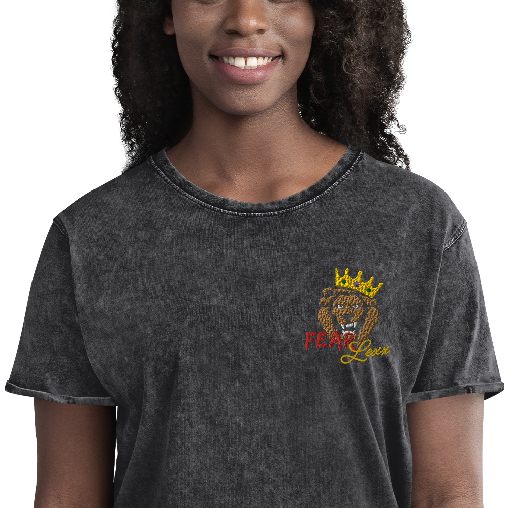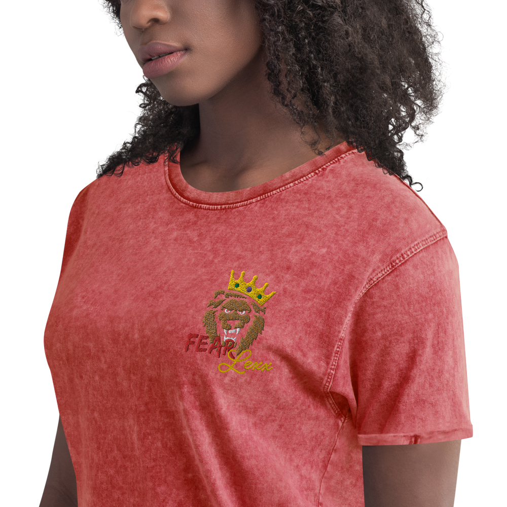 Vintage Denim Embroidered "Red Fear" T-Shirt