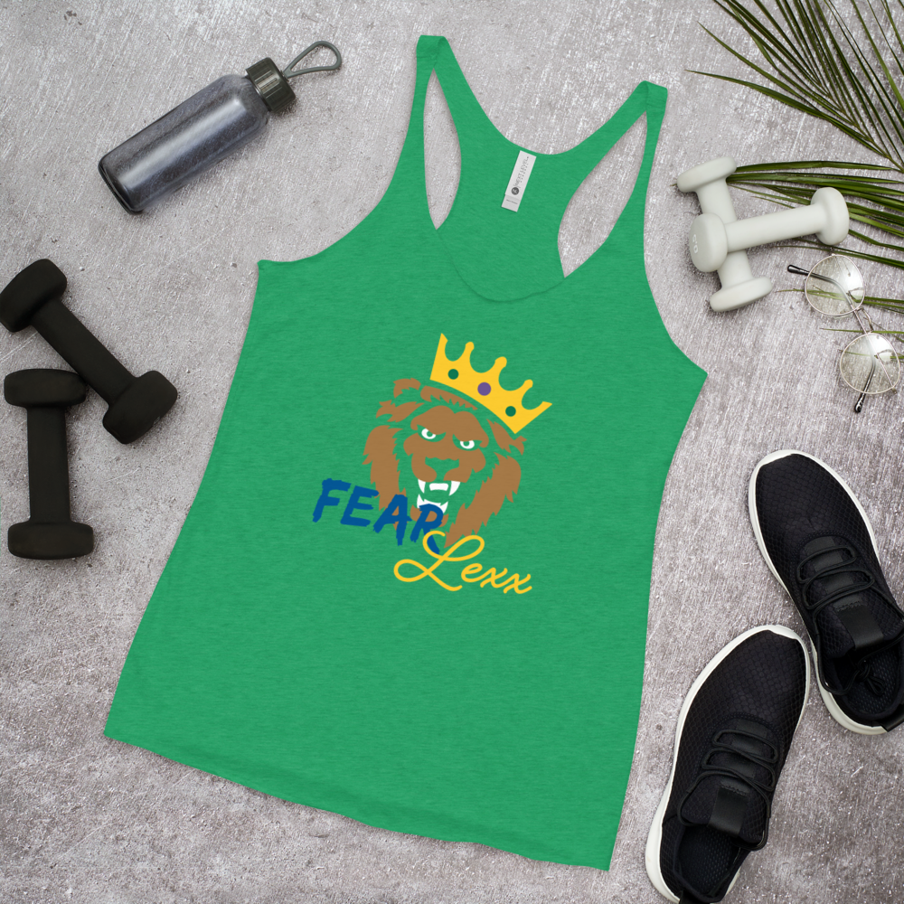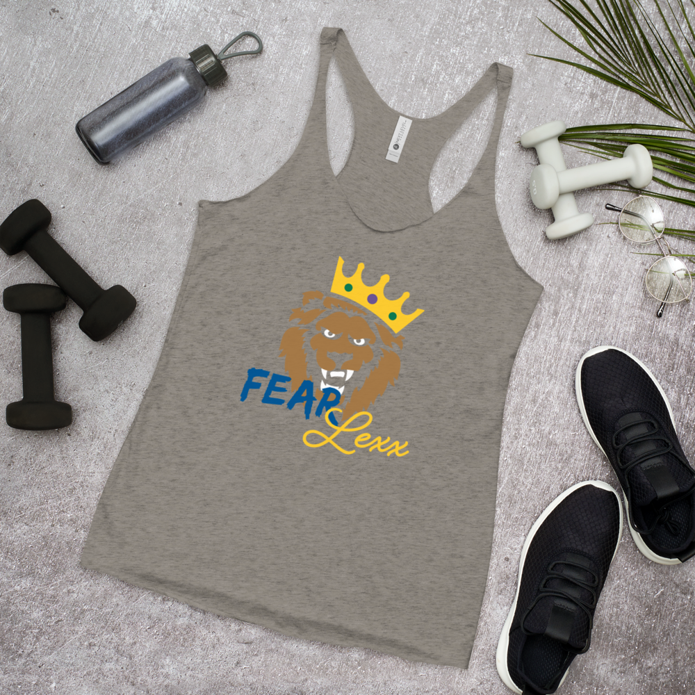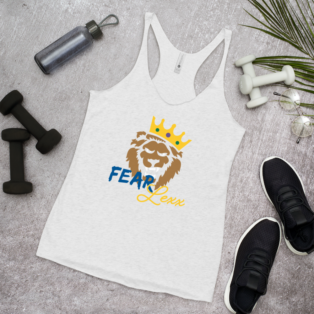 Women's Racerback Tank (Blue "fear" front and back)